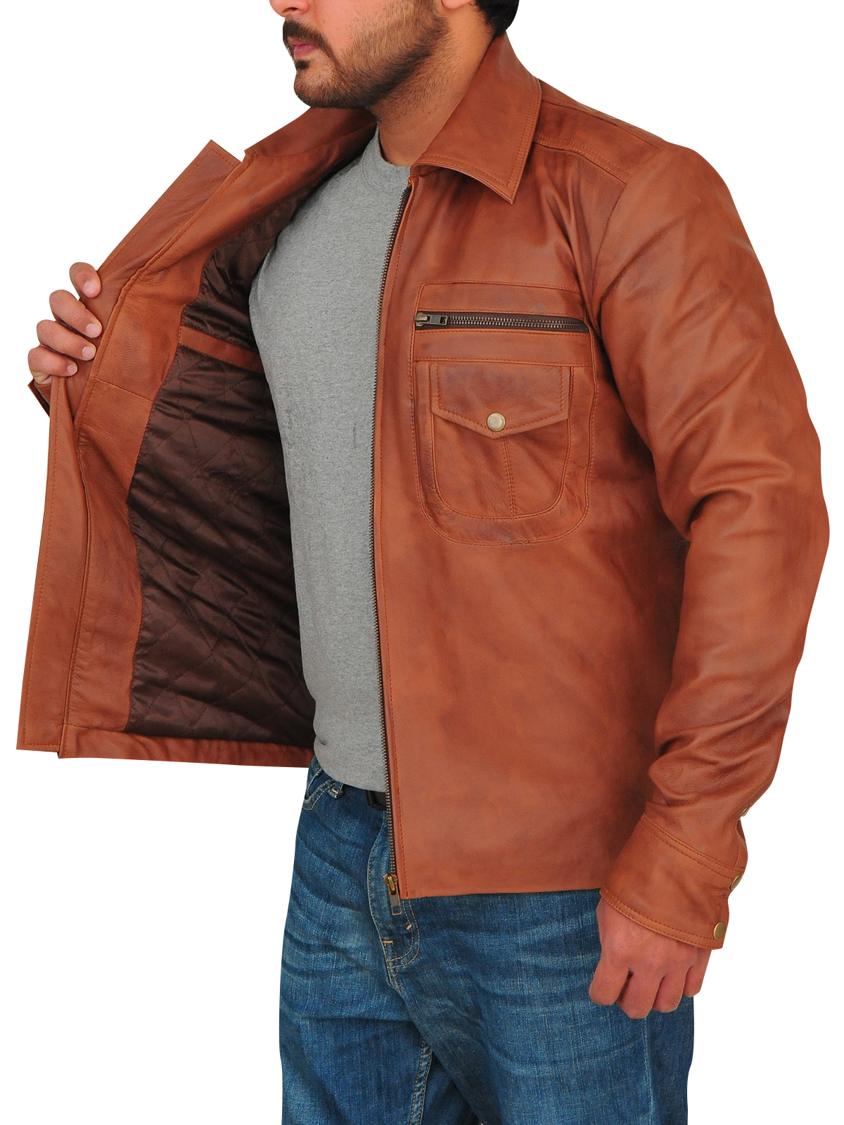Screen displays vary, and natural lighting can affect how colors appear. Your jacket will match its description, with the beauty of genuine leather’s natural depth and richness.