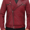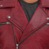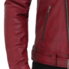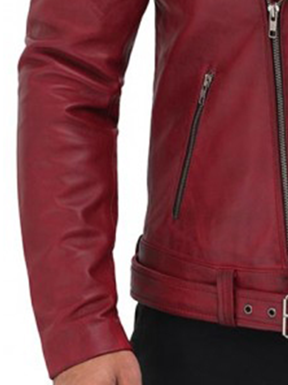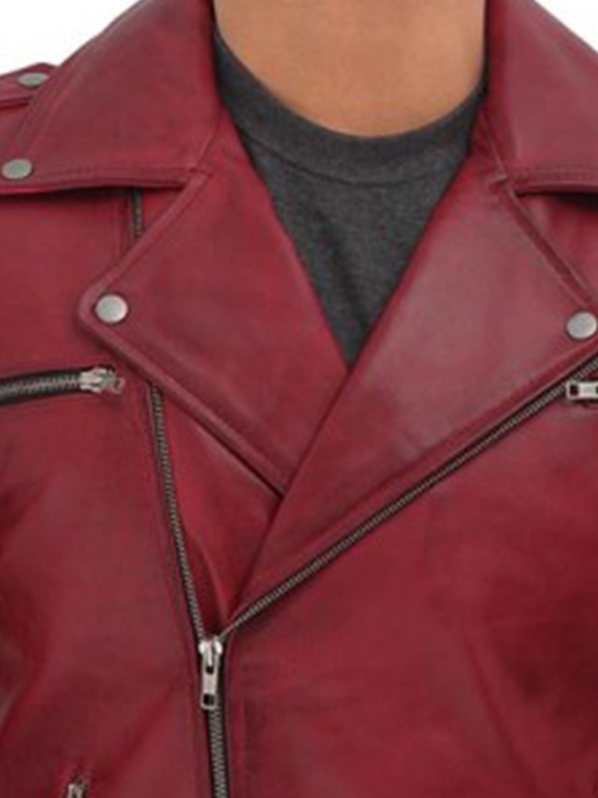 Biker style elevated with a modern shade of maroon, the jacket is crafted to perfection with real leather and lined with viscose.