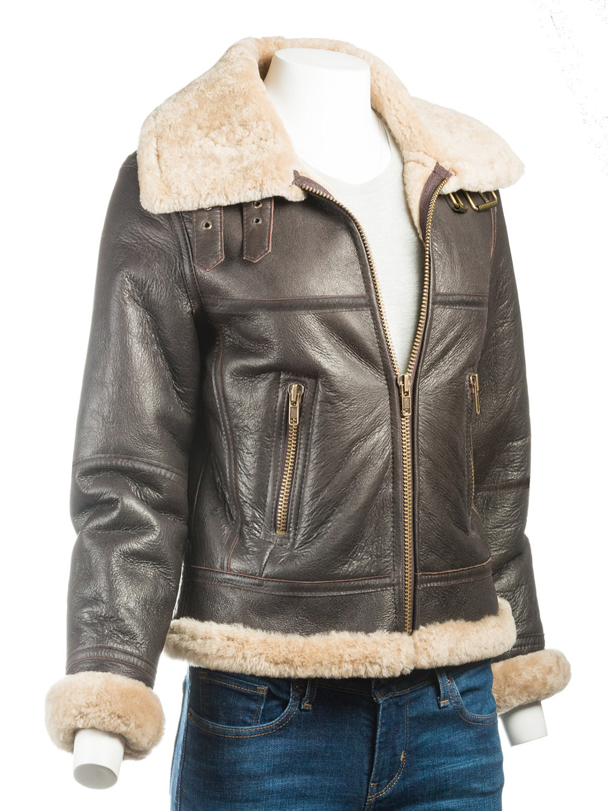 While sewing this vintage bomber jacket, genuine leather material has been utilized to fulfill your style guidelines. A hide inward shearling covering and the front zipper end are included in this delightful plane jacket to make your character engage with this mix. You’ll see that hide neckline and the rib sew sleeves extremely beautiful in this B-3 Bomber Sheepskin Women Jacket that includes an enchanting component as a part of your character when you show up in the audience. So wear this leather jacket and celebrate the compliments from companions and friends. This Jacket is Available in Brown and Black Leather.