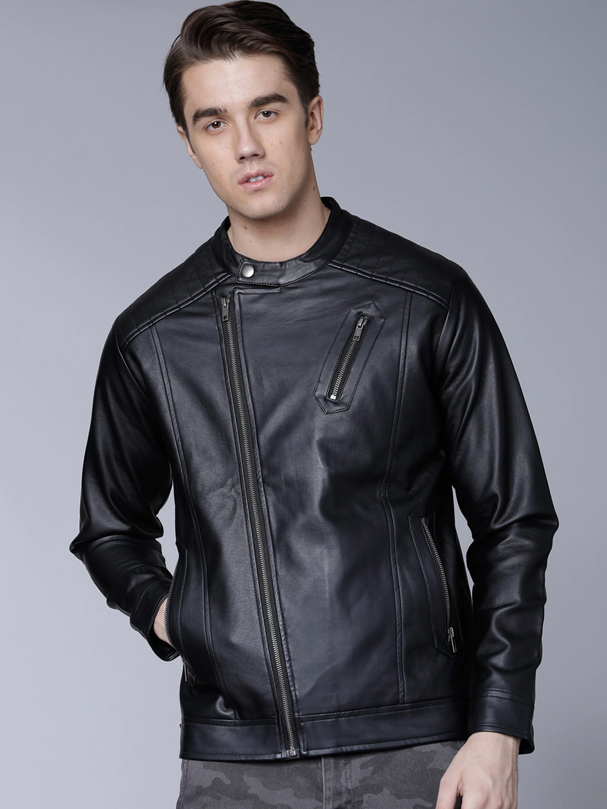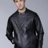 Men Black Faux Biker Style Jacket with faux fur lining.This is a classic style jacket with a clean, subtle look for four season wearable.