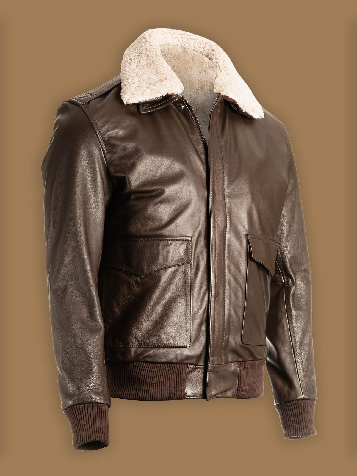 MauveTree made this sleek Men Brown Shearling Pilot Jacket with 100% pure sheep leather. Leather is fresh and properly tanned. Branded zippers, rib knitted cuffs and waistline makes it more appealing. Not just that we have all the sizes available at discounted prices. We deliver almost everywhere but USA, UK, Canada and Australia have free shipping. Grab yours right away!