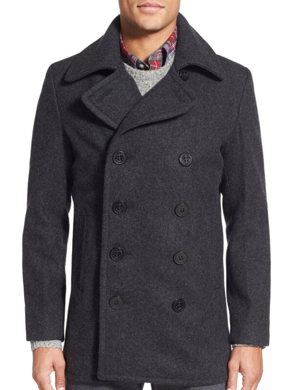 A smooth wool blend tailored in a modern, trim-fitting silhouette defines a timeless peacoat that does away with all the extra bells and whistles to achieve a crisp, clean appearance