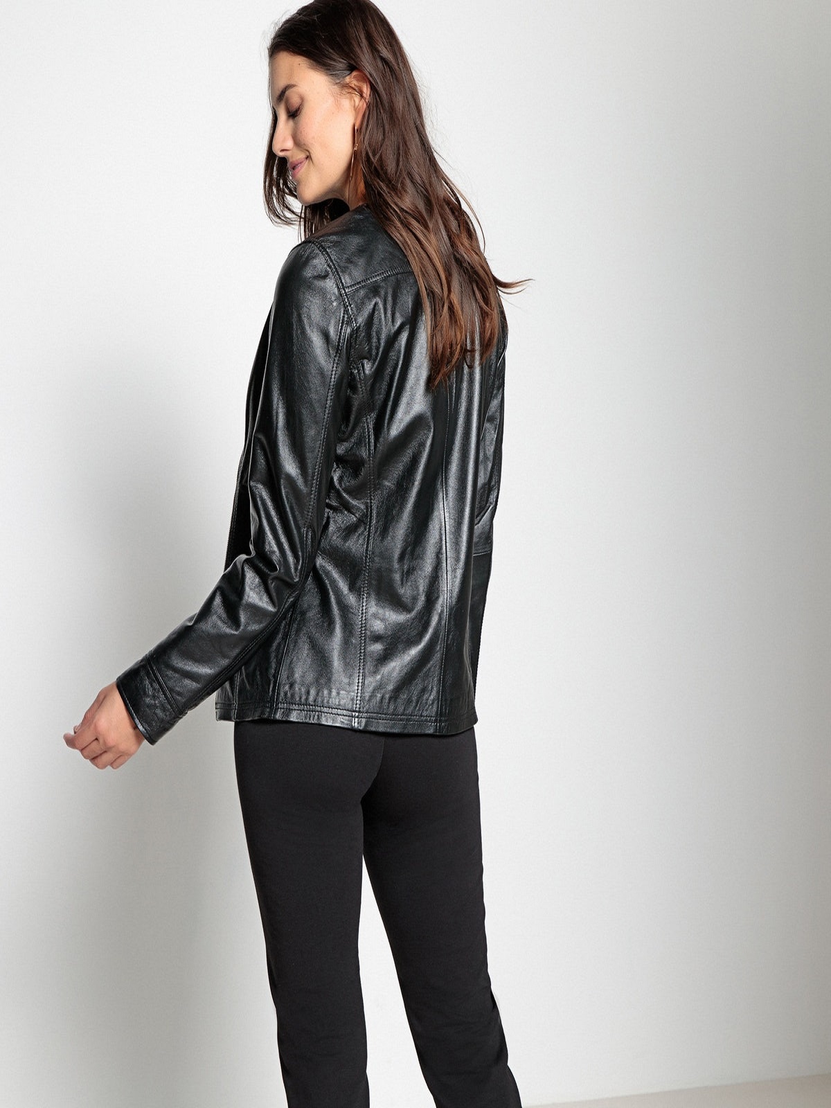 Screen displays vary, and natural lighting can affect how colors appear. Your jacket will match its description, with the beauty of genuine leather’s natural depth and richness.